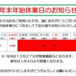 年末年始の休業日のご案内