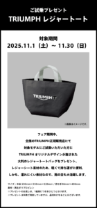 • 2025/11/4 11月1日(土)〜 11月30日(日) TRIUMPH EXCITING RIDE FAIR 開催!